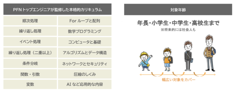 さらに、小学生向けの教室としては珍しく、最初はビジュアルコーディングから始めながら、ゆくゆくは本格的なテキストコーディングまで学べるカリキュラムが用意されています。