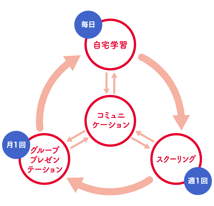 A: 自宅学習では、コーチとお子さんが話し合いながら、無理なく取り組める課題を設定します。