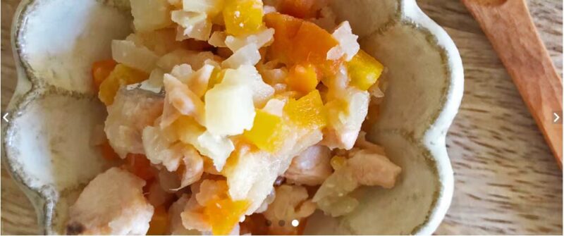 国産の鶏ささみをベースに、キャベツ・にんじん・とうもろこし・さやいんげんがたっぷり。