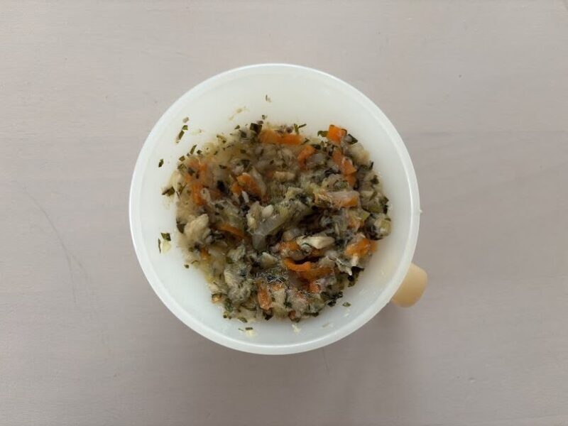 軟飯と一緒に食べさせるとテンポ良くパクパク。