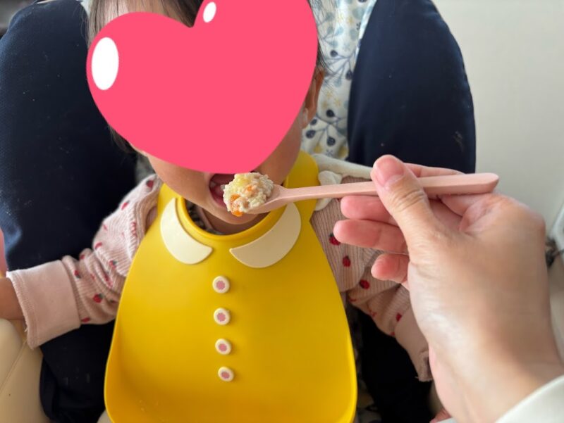 そのあとも「もっとちょうだい」と言わんばかりに口を開け、スプーンの先をじっと見つめて「次は?」と期待している様子でした。